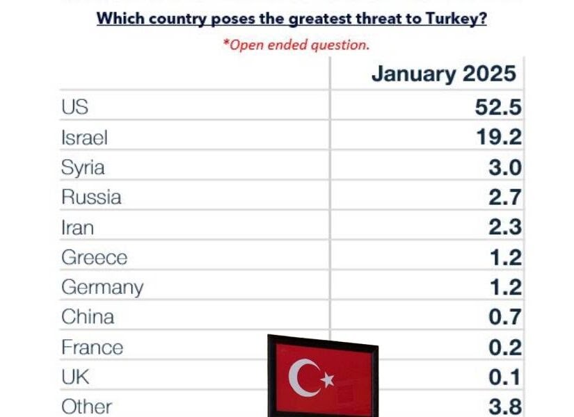 Η έρευνα της τουρκικής εταιρείας Metropoll, που διεξήχθη τον Ιανουάριο του 2025, καταγράφει τις αντιλήψεις των Τούρκων πολιτών, σχετικά με τη μεγαλύτερη απειλή για τη χώρα τους.