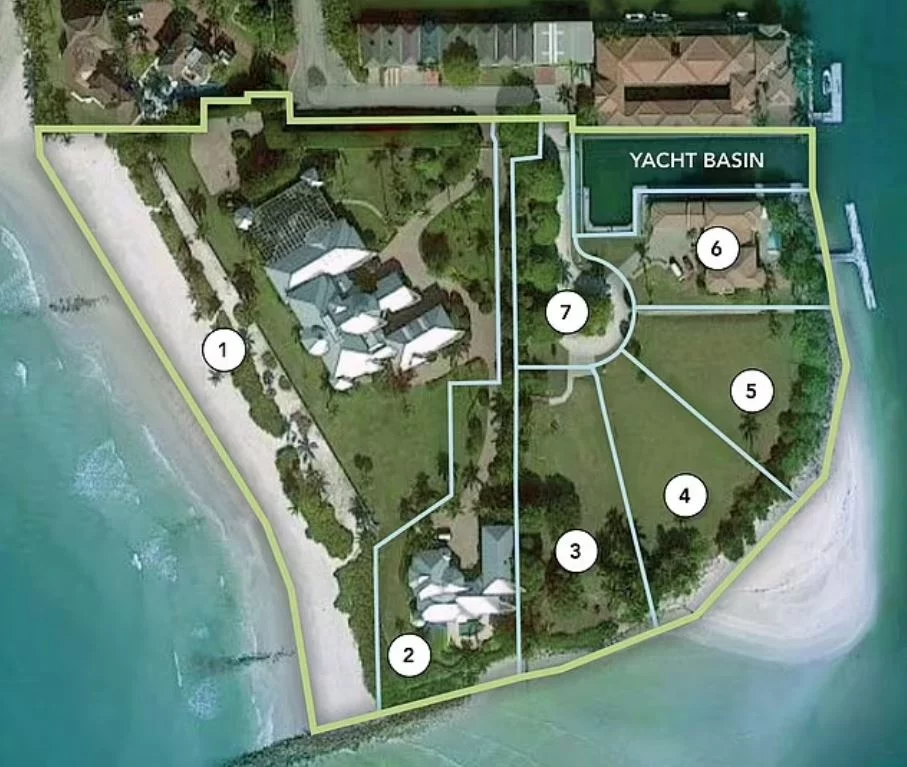 Σύμφωνα με το μεσιτικό γραφείο, η ιδιοκτησία διαθέτει τρεις κατοικίες και μια ιδιωτική παραλία καθώς και ένα ιδανικό σημείο για την αγκυροβόληση γιοτ και αποτελεί την υψηλότερη τιμή εισαγωγής στις ΗΠΑ.