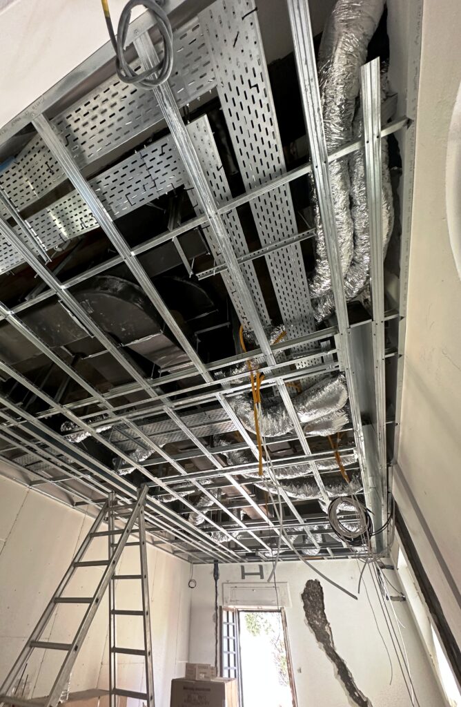 Στον 1ο όροφο του κτηρίου έχουν σχεδόν ολοκληρωθεί οι ηλεκτρομηχανολογικές εργασίες και έχουν προχωρήσει οι οικοδομικές, όπως καθαιρέσεις, ψευδοροφές, αποξήλωση wc, αποκατάσταση σιδηρών κιγκλιδωμάτων. Σήμερα εκτελούνται εργασίες τοποθέτησης πλακιδίων, αποκαταστάσεις και ελαιοχρωματισμοί.