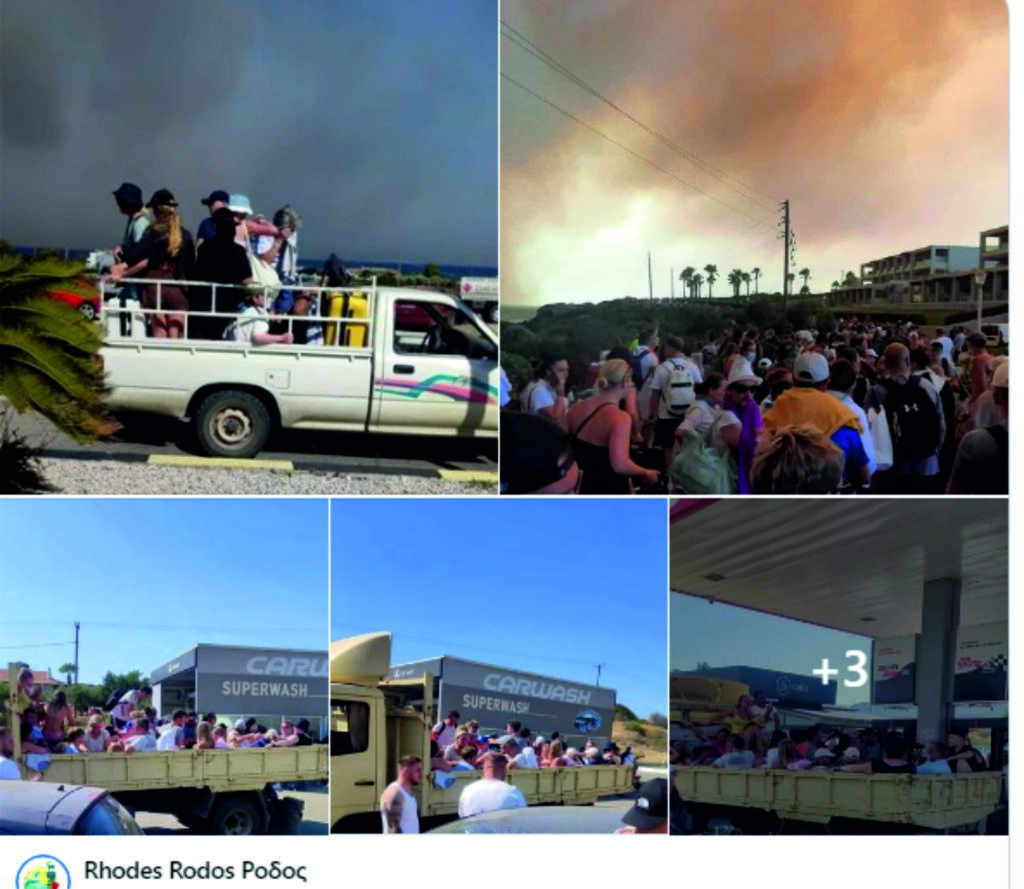 Δραματικές είναι οι στιγμές που ζουν κάτοικοι και τουρίστες στις περιοχές Κιοτάρι και Λάρδος οι οποίες εκκενώνονται λόγω των πυρκαγιών που μαίνονται ανεξέλεγκτες. Πάνω από 1.500 τουρίστες έχουν απεγκλωβιστεί μέχρι στιγμής.