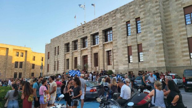 Συγκέντρωση διαμαρτυρίας, για τη σκληρή δοκιμασία που βίωσε το νησί της Ρόδου από τον εφιάλτη των πυρκαγιών επί 12 συνεχόμενες μέρες, πραγματοποιήθηκε το απόγευμα της Τρίτης (1/8) στην πλατεία Δημαρχείου.