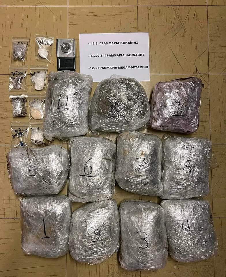 Κατασχέθηκαν 6,2 κιλά κάνναβης, 42 γραμμ. κοκαΐνης, 12 γραμμ. μεθαμφεταμίνης, ζυγαριά ακριβείας, κ.α.