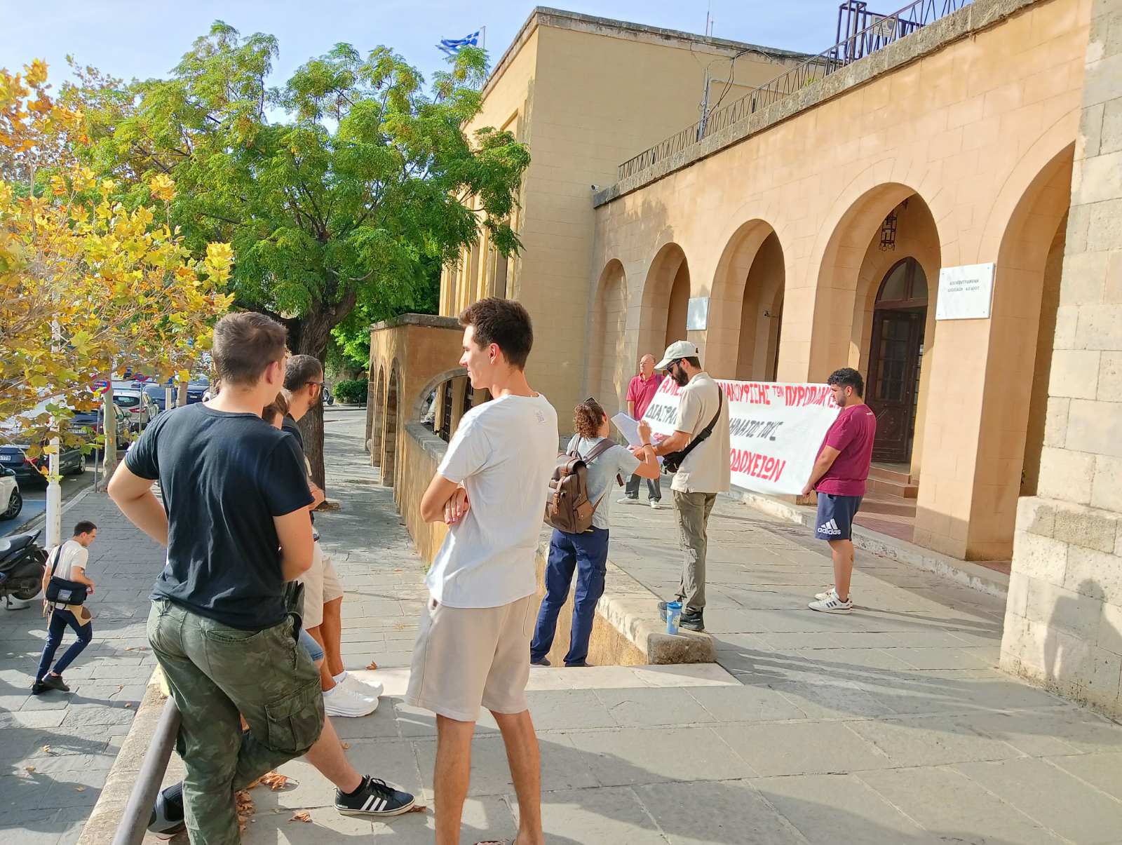 Διαμαρτυρία πραγματοποίησε σήμερα Τρίτη 26.9 η Δ.Α.Σ. Επισιτισμού -Τουρισμού, Ξενοδοχοϋπαλλήλων Ρόδου στην αποκεντρωμένη διοίκηση Αιγαίου για τα προβλήμτα που αντιμετωπίζουν οι εργαζόμενοι του κλάδου στη νότια Ρόδο και έχουν μείνει χωρίς εισόδημα εξαιτίας της πυρκαγιάς.
