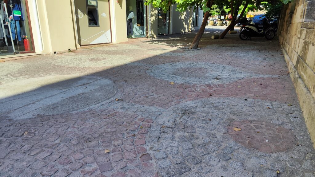 καμένα, σε αναμονή της επόμενης βροχής. - Η «βελτίωση» του πεζόδρομου – αφιέρωμα στη μνήμη του ήρωα «Γιώργου