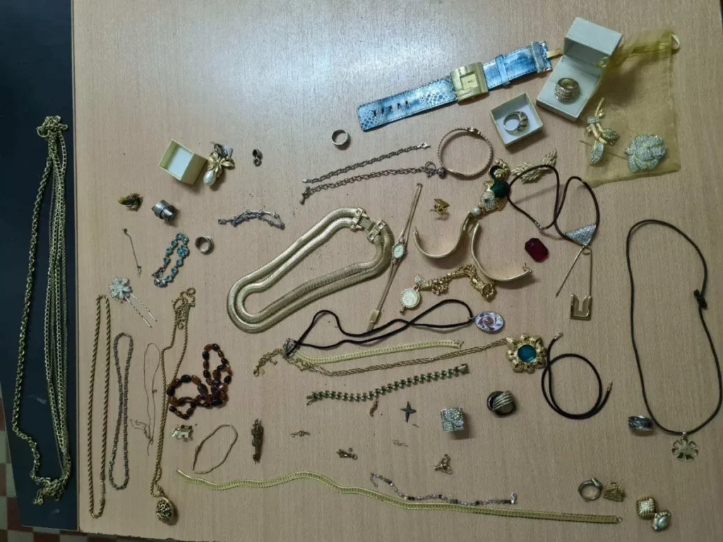 Τα ανευρεθέντα κοσμήματα που βλέπετε στην παρακάτω φωτογραφία κατασχέθηκαν και αποδόθηκαν στον δικαιούχο.
