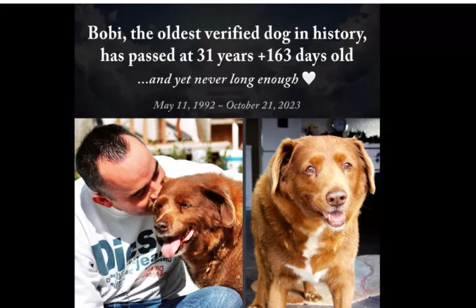 ΟΜπόμπι, ο γηραιότερος σκύλος του κόσμου, πέθανε σε ηλικία 31 ετών στην Πορτογαλία, ανακοίνωσαν σήμερα τα Παγκόσμια Ρεκόρ Γκίνες.
