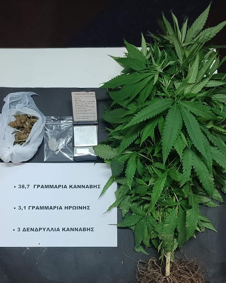 Κατασχέθηκαν 41 γραμμ. κάνναβης, 3 γραμμ. ηρωίνης, «φιξάκι» κοκαΐνης, 3 δενδρύλλια και ζυγαριά ακριβείας