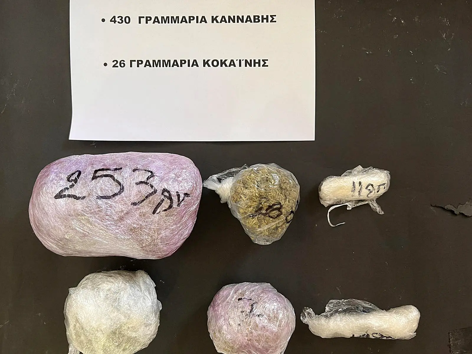 Κατασχέθηκαν 430 γραμμ. κάνναβης και 26 γραμμ. κοκαΐνης