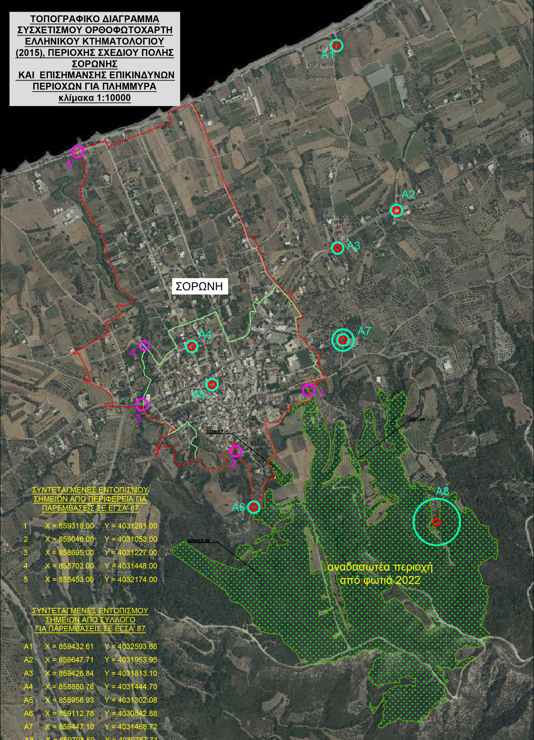 Επισυνάπτεται απόσπασμα χάρτη με τα σημεία για τα οποία ήδη οι αρμόδιες αρχές γνώριζαν με την προαναφερομενη μελέτη, αλλά και με τα σημαντικά σημεία που υποδειξαμε στις Τεχνικές Υπηρεσίες για προώθηση των αιτημάτων μας για την μέγιστη προστασία του οικισμού.