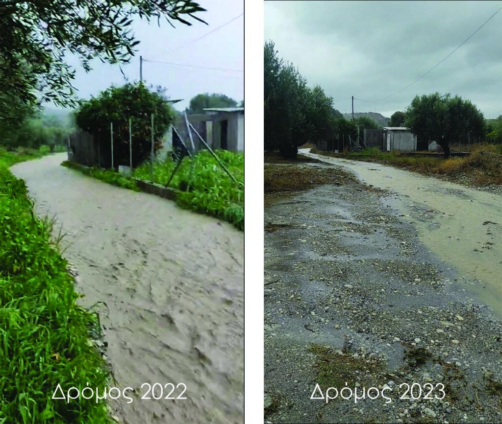 Για το ζήτημα των ρεμάτων, στο σύνολο του νησιού είχε δοθεί εργολαβία, η οποία έμεινε όμως σε επιφανειακή καθαριότητα ό,τι φαινόταν στην κεντρική επαρχιακή οδό, και από εκεί και πέρα ακόμα και στις συναντήσεις μας και επικοινωνίες, υπήρξε αποποίηση ευθυνών ή ακόμα χειρότερα ξεκάθαρη μη πρόθεση να μπει σε προτεραιότητα το ζήτημα, παρά το γεγονός ότι τα προβλήματα ταλανίζουν την περιοχή καιρό, και ιδιαίτερα μετά την φωτιά του Απριλίου του 2022 που επηρέασε σοβαρά τη λεκάνη απορροής νοτιοανατολικά του οικισμού.