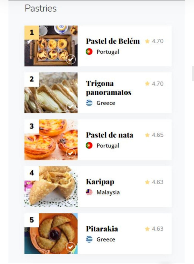 Στην πρώτη 5αδα των pastries – στην 5η θέση – βρίσκεται άλλο ένα ελληνικό γλύκισμα με φύλλο ή ζύμη: τα πιταράκια της Μήλου.