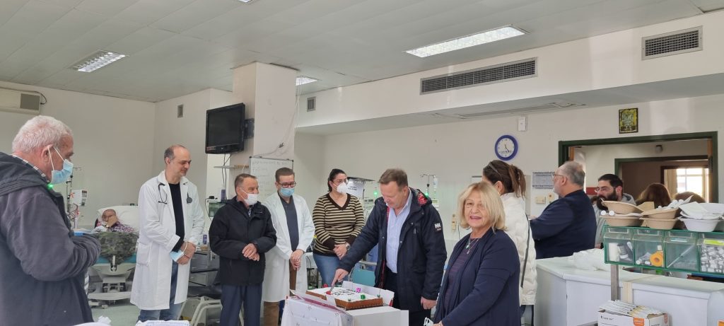 Την βασιλόπιτα του έκοψε σήμερα ο Σύλλογος Νεφροπαθών Ρόδου. Στην εκδήλωση παρευρέθηκαν ο Αντιπεριφερειάρχης κ. Χρ. Ευστράτιου (πάντα κοντά στον Σύλλογο), ο προέδρος κ. Δημήτρης Γαλανός, οι γιατροί κ.κ. Χρήστος Παλιούρας, Άγγελος Ζερβός, Μανώλης Παπαμανώλης, Φωτεινή Λαμπριανού, η προϊσταμένη κα Μαρία Μαραγκάκη και οι νοσηλεύτριες της βάρδιας.
