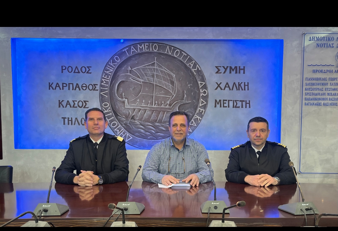 Εθιμοτυπική επίσκεψη πραγματοποίησαν την Τρίτη, 20 Φεβρουαρίου, στον πρόεδρο του Λιμενικού Ταμείου Νότιας Δωδεκανήσου, Βασίλη Βαγιανάκη, ο αρχιπλοίαρχος και διοικητής της 8ης Περιφερειακής Διοίκησης του Λιμενικού Σώματος, Ιωάννης Δελλής και ο πλοίαρχος, υποδιοικητής του ΛΣ-Ακτοφυλακής, Σπύρος Τάτης.