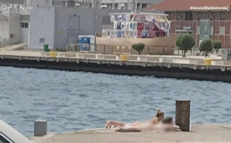 Μια παράξενη εικόνα έρχεται από τη Θεσσαλονίκη, με δύο γυναίκες που έκαναν ηλιοθεραπεία στην παλιά παραλία ολόγυμνες.