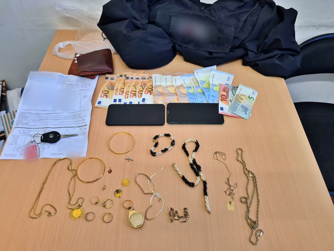 Οι αστυνομικοί που διερεύνησαν τις καταγγελίες, κατάφεραν στο πλαίσιο επισταμένης έρευνας, να εντοπίσουν τον δράστη στη κατοχή του οποίου βρέθηκαν τα τιμαλφή και μέρος του αναιρεθέντος χρηματικού ποσού, τα οποία είχε επιμελώς κρυμμένα σε «καβατζα» εξωτερικά της κατοικίας του.