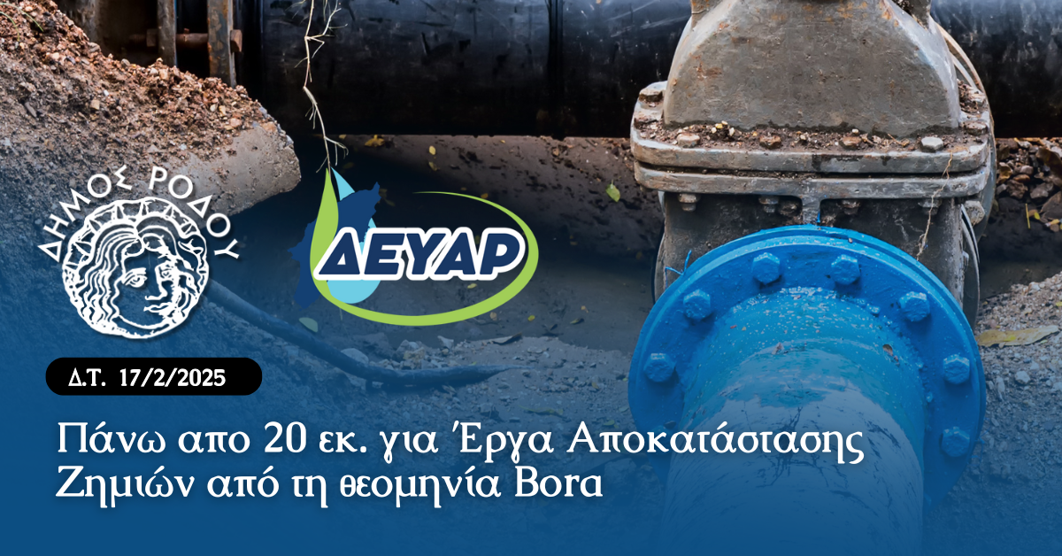 Η ΔΕΥΑ Ρόδου αποδεικνύει καθημερινά την αποφασιστικότητα και την ικανότητά της να ανταποκρίνεται στις ανάγκες του νησιού, με άμεσες και στοχευμένες ενέργειες. Από την πρώτη στιγμή της καταστροφικής θεομηνίας της 30ης Νοεμβρίου, σε άμεση συνεργασία με τον Δήμο Ρόδου, η ΔΕΥΑΡ κινητοποιήθηκε ιεραρχώντας τις ανάγκες, για την αποκατάσταση των ζημιών και την προστασία των πολιτών. Προχώρησε σε μελέτες και δημοπρατήσεις έργων με ρυθμούς πρωτόγνωρους για τα ελληνικά δεδομένα του δημοσίου, στοχεύοντας στην αποκατάσταση των καταστροφών για την επαναφορά της ομαλής λειτουργίας των υποδομών ύδρευσης και αποχέτευσης. Άμεσα η ΔΕΥΑΡ προχώρησε σε πλήθος δημοπρατήσεων και στη σύναψη συμβάσεων για τα παρακάτω έργα: -Έργα Αποκατάστασης * Αποκατάσταση Αντλιοστασίων Ακαθάρτων Ιαλυσού : 4.193.000€ Αποκατάσταση Αγωγών Γέφυρας Φαληρακίου: 30.000€ Κατασκευή Νέου Δικτύου στην Τ.Κ. Αφάντου (Σ.Ο.Α.): 295.000€ Αντικατάσταση Καταθλιπτικού Δικτύου Παραδεισίου: 298.000€ Αντικατάσταση Αγωγών Ύδρευσης στις Περιοχές Κράνα – Ψάλτος (Δ.Ε. Λίνδου): 300.000€ Αντικατάσταση Δικτύου Ύδρευσης (Σύνδεση Δεξαμενής Κεραμιδενιάς – Δεξαμενή Παπατσάρη, Κρεμαστή): 300.000€ Αποκατάσταση Οδοποιίας σε Εγκαταστάσεις που Επλήγησαν: 1.700.000€ Αποκατάσταση Γεωτρήσεων που Επλήγησαν από τη Θεομηνία: 900.000€ Αποκατάσταση Αγωγού Φ600 (Σύνδεση Γεωτρήσεων Ρόδου με Δεξαμενή Πόρτες, Καλυθιές): 300.000€ Αποκατάσταση Ηλεκτρομηχανολογικών & Τεχνικών Εγκαταστάσεων Αντλιοστασίων Ύδρευσης: 900.000€  Δημόσιες Δημοπρατήσεις της Ερχόμενης Παρασκευής Στο πλαίσιο της αποκατάστασης των ζημιών που υποβλήθηκαν στο Υπουργείο Εσωτερικών και στο Υπουργείο Κλιματικής Αλλαγής, την ερχόμενη Παρασκευή, κατά τη συνεδρίαση του Δ.Σ. της ΔΕΥΑΡ, η υπηρεσία, έχοντας ολοκληρώσει το σύνολο των μελετών, θα προχωρήσει στις δημοπρατήσεις των παρακάτω έργων: Αντικατάσταση Καταθλιπτικού Δικτύου στην Τ.Κ. Σορωνής: 300.000€ Αποκατάσταση & Επισκευή Χερσαίου και Υποθαλάσσιου Αγωγού Διάθεσης ΒΙΟΚΑ Κρεμαστής: 835.000€ Αντικατάσταση Καταθλιπτικού Αγωγού Ακαθάρτων Φ500 & Ανακατασκευή Αντλιοστασίων (Ψαροπούλα – Έλλη): 3.400.000€ Αποκατάσταση Καταθλιπτικού Αγωγού Ιαλυσού (3,5 χλμ.): 1.075.000€ Κατασκευή Δικτύου Ομβρίων Υδάτων στην Τ.Κ. Αφάντου: 1.478.000€ Αποκαταστάσεις Δικτύων Ύδρευσης στις Πληγείσες Περιοχές (Δ.Ε. Ρόδου, Καλλιθέας, Καμείρου, Πεταλούδων, Ιαλυσού): 1.500.000€ Κατεπείγουσα Καθαριότητα Φρεατίων Ομβρίων και Αποχέτευσης: 450.000€ Αποκατάσταση Φρεατίων Αποχέτευσης & Υδροσυλλογής: 450.000€ Κατεπείγουσα Προμήθεια και Εγκατάσταση Υδρομετρητών στις Πληγείσες Περιοχές: 1.800.000€ Εκπόνηση Μελετών για Συνολική Αποκατάσταση Η ΔΕΥΑ Ρόδου, ανέθεσε και την εκπόνηση των μελετών για τη συνολική αποκατάσταση των υποδομών του νησιού, για τα έργα αποκατάστασης που υποβλήθηκαν σε υπερπλήρη φάκελο στο Υπουργείο Εσωτερικών και το Υπουργείο Κλιματικής Αλλαγής, με συνολικό προϋπολογισμό που ξεπερνά τα 54 εκατομμύρια ευρώ. Οι μελέτες αυτές αφορούν σε: Κατασκευή Νέου Δικτύου Αποχέτευσης Ομβρίων Υδάτων στην Τ.Κ. Ιαλυσού: 225.000€ Υδραυλικές Μελέτες για την Αποκατάσταση Δικτύων Ύδρευσης και Αποχέτευσης για τις Πληγείσες Περιοχές: 150.000€ Μελέτη Αξιολόγησης Υφιστάμενης Κατάστασης και Αναγνώρισης Αναγκών στη Διαχείριση των Αστικών Ομβρίων Υδάτων: 29.798€ Μελέτη Κλιματικής Ανθεκτικότητας: 29.798,7€ Μελέτη Ανάλυσης Ζήτησης Υδάτων για το 2025 μετά τη Θεομηνία: 29.379€ Μελέτη Αποτίμησης του Ανθρακικο